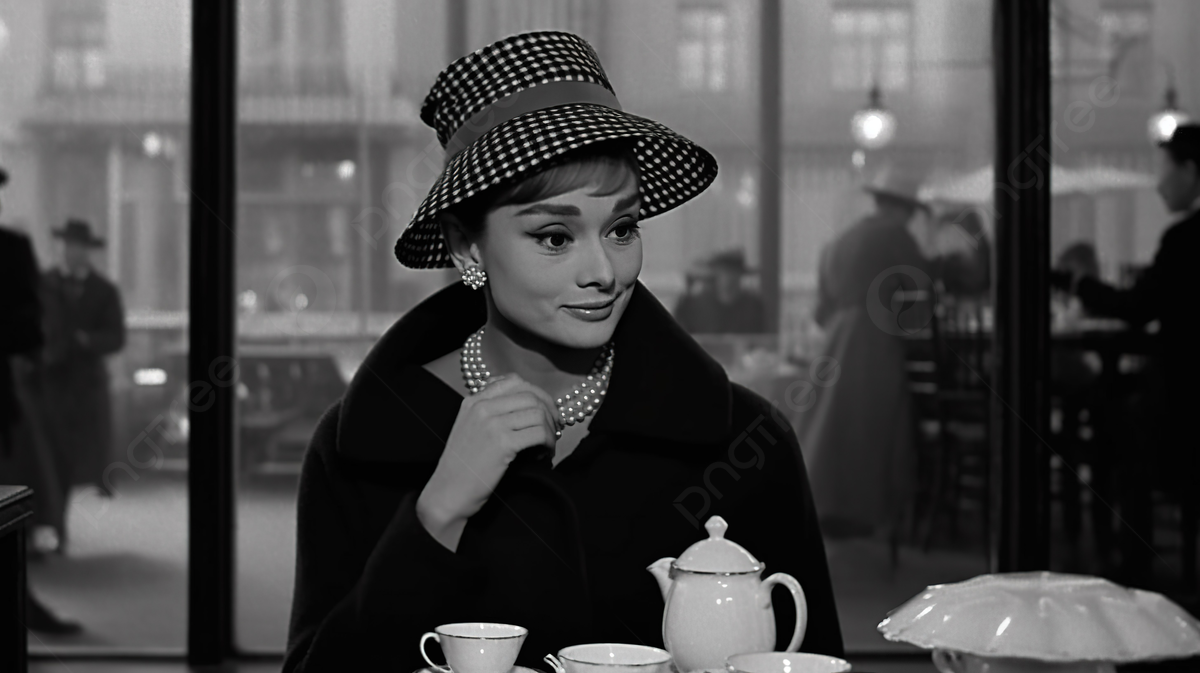 티파니에서 아침을 오드리햅번이 노상카페에서 에스프레소잔을 들고있는 모습
