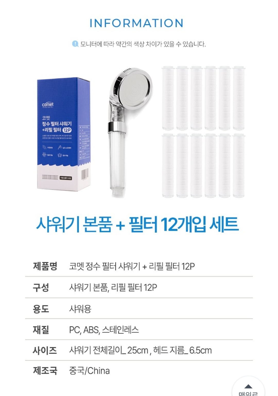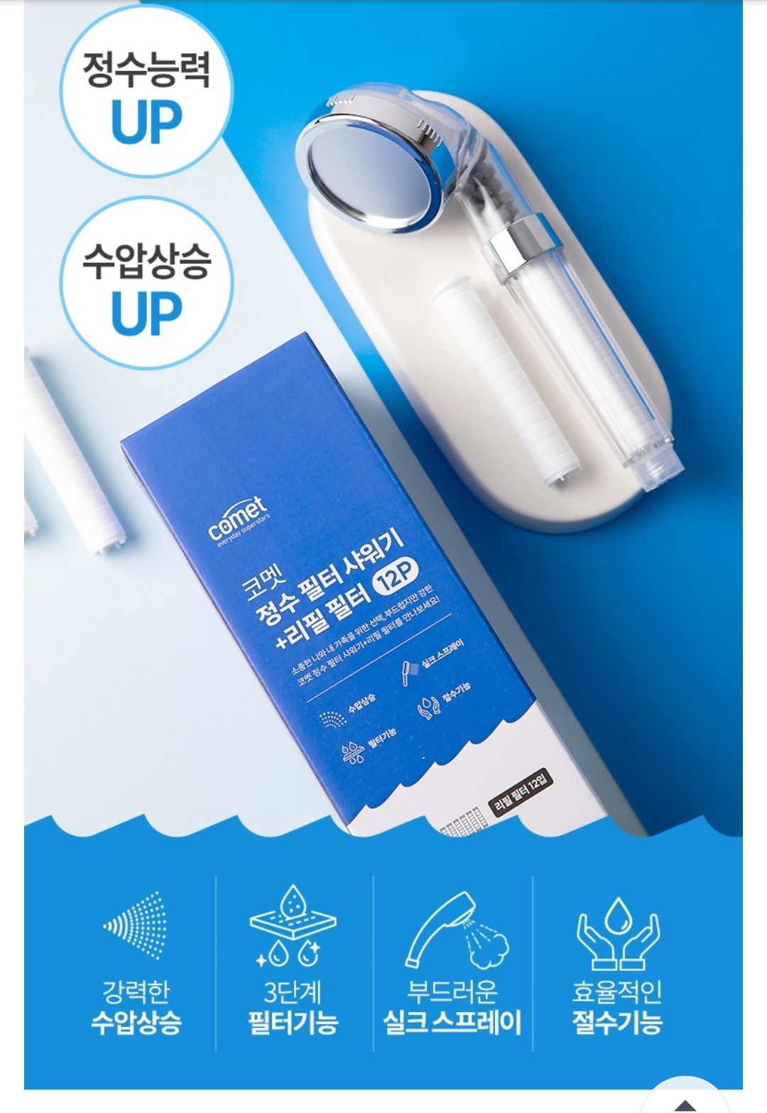 코멧 정수 필터 샤워기 + 리필 필터 12p 세트 - 필터샤워기 | 쿠팡