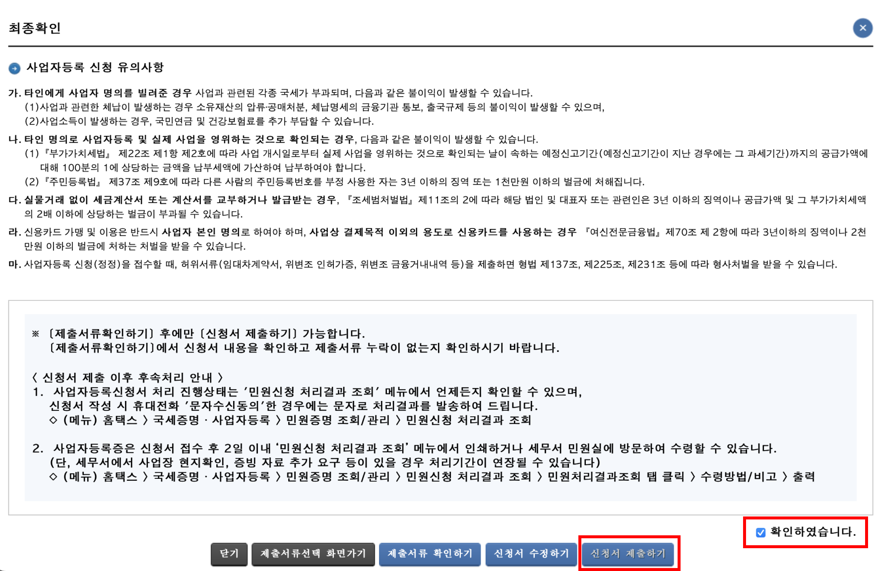 위와 같이 제출하기를 마치면 신고가 끝납니다~