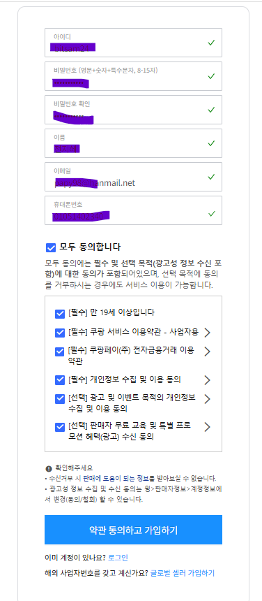 [약관 동의하고 가입하기] 버튼을 클릭합니다.
