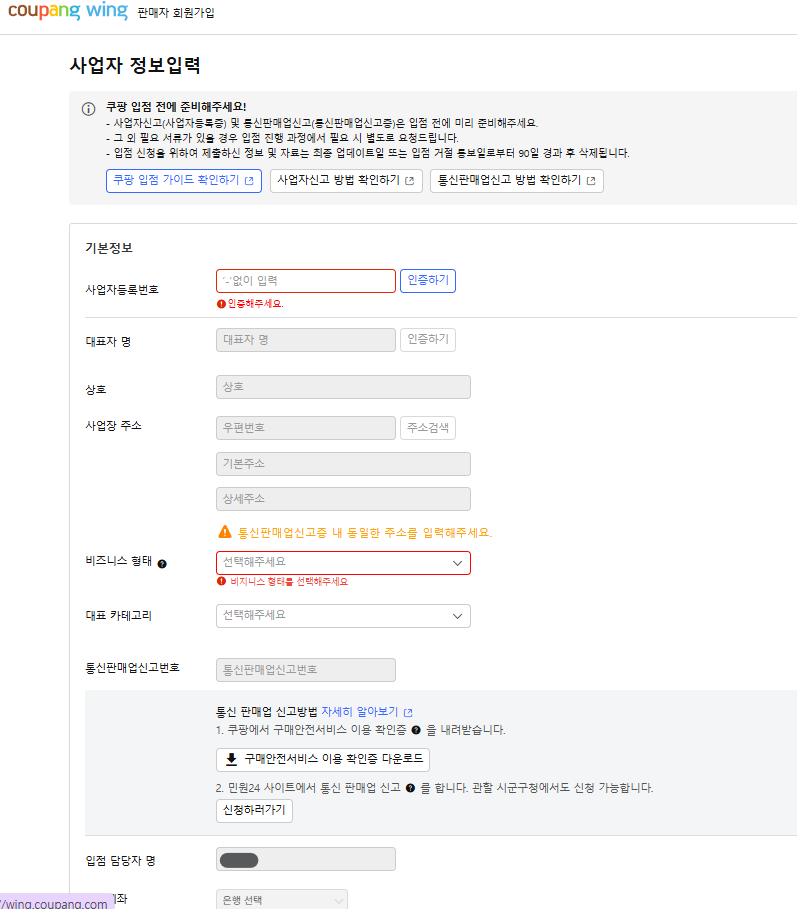 step1 쿠팡윙 가입하기