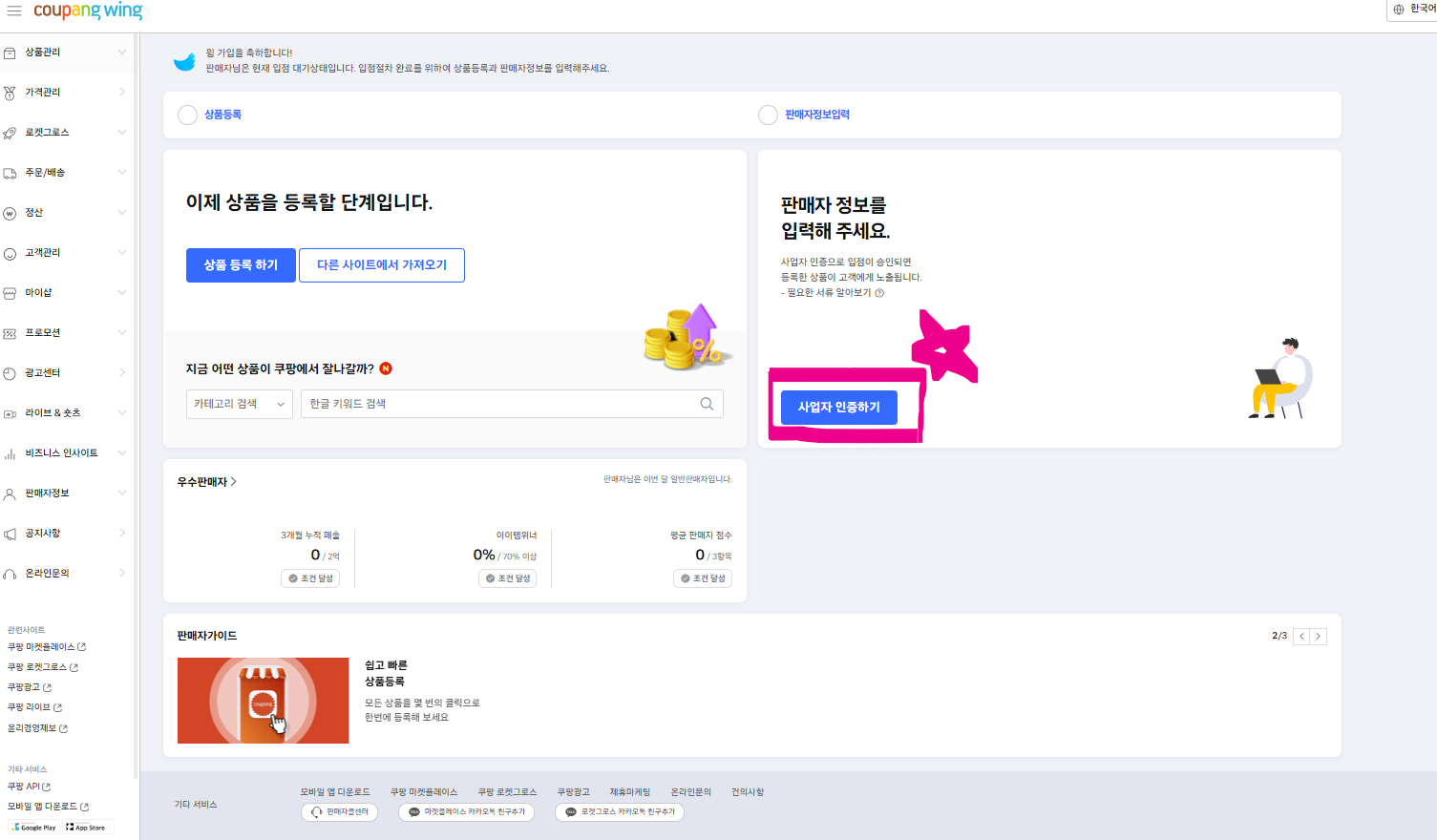 쿠팡에서 상품을 판매하고 싶으신가요? 그렇다면 쿠팡윙(Coupang Wing)에 가입하는 것이 첫 번째 단계입니다.