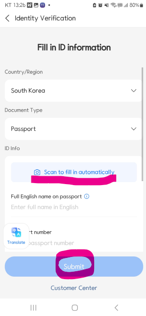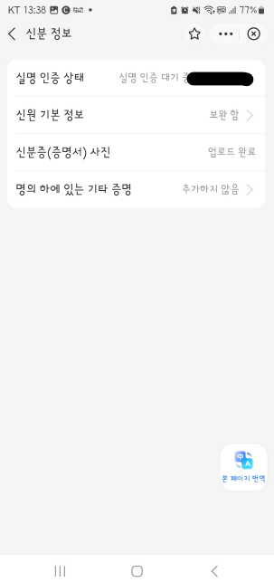 - 여권 실명 인증까지 마치면 아래와 같이 뜹니다. (저는 구글번역기를 켜두었더니 한글 메시지가 뜨네요. ^^ )
