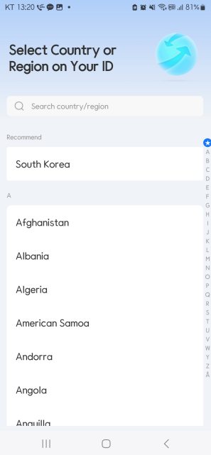 나라는 자동으로 설정이 되는것같고, 인증방법은 세가지가 있는데 여권이 여러모로 국제적인 거래를 하는거라