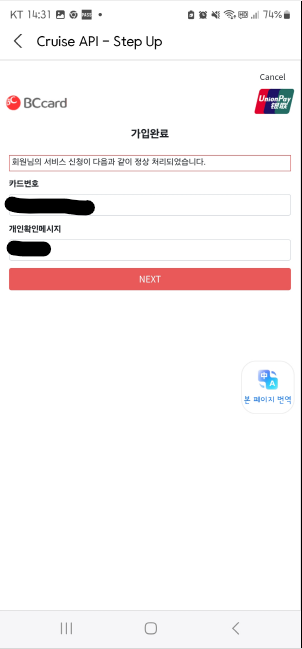 - 카드 등록 완료: 카드 정보가 정확하면 은행 카드 등록이 완료됩니다.