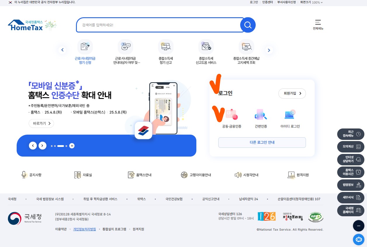 - 국세청 홈택스 접속: