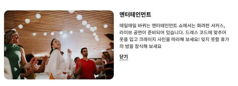 올인클루시브는 숙박, 활동, 식사, 엔터테인먼트, 음료 등 모든 세부 사항을 모두 해결가능한 숙박업체라는 의미입니다.