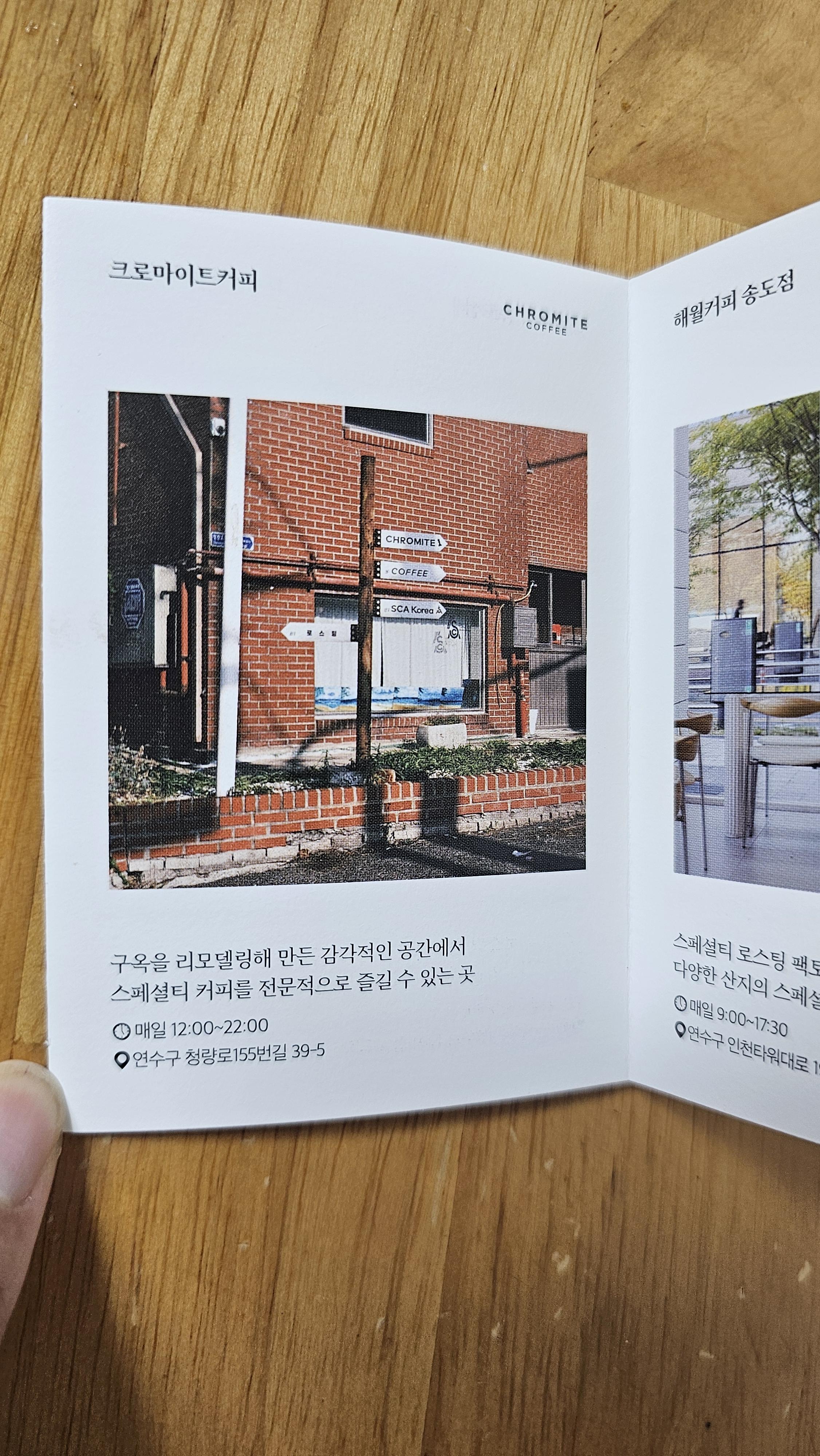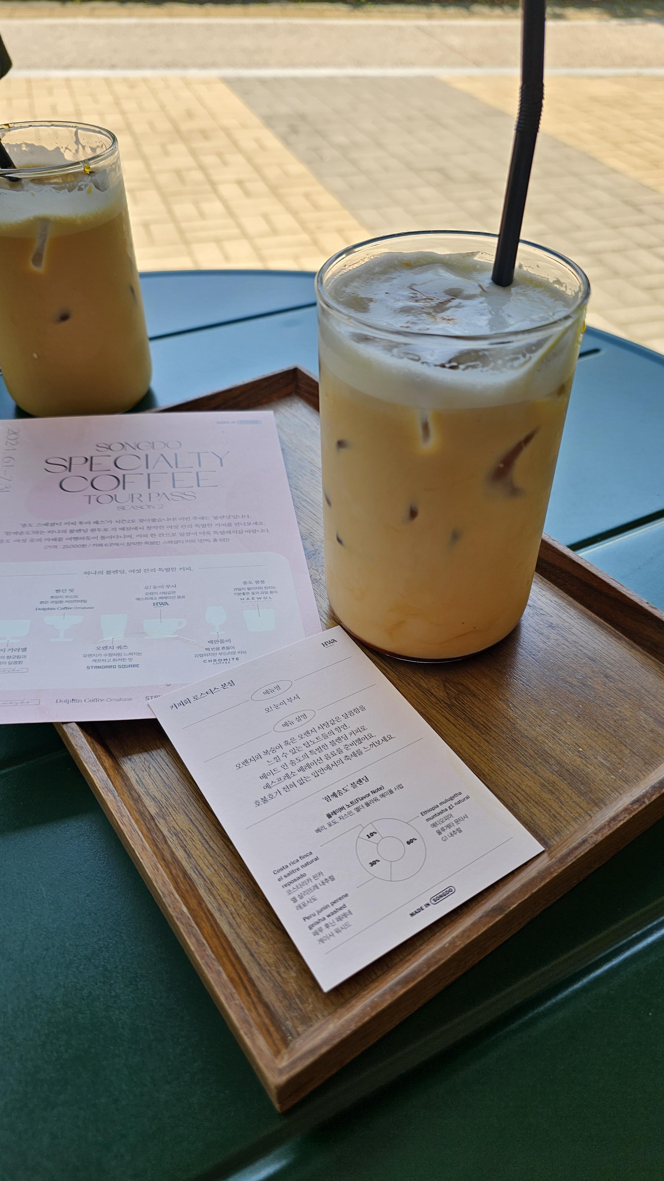 투어 순서 : 커피화로스터스 → 돌핀커피 오마카세 → 기노스코 → 해월송도커피 → 스탠다드 스퀘어 → 크로마이트 커피