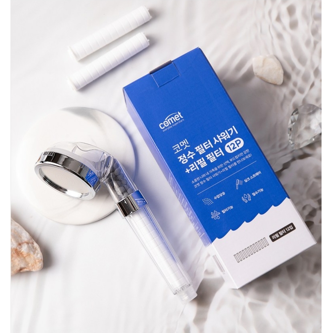 코멧 정수 필터 샤워기 + 리필 필터 12p 세트
