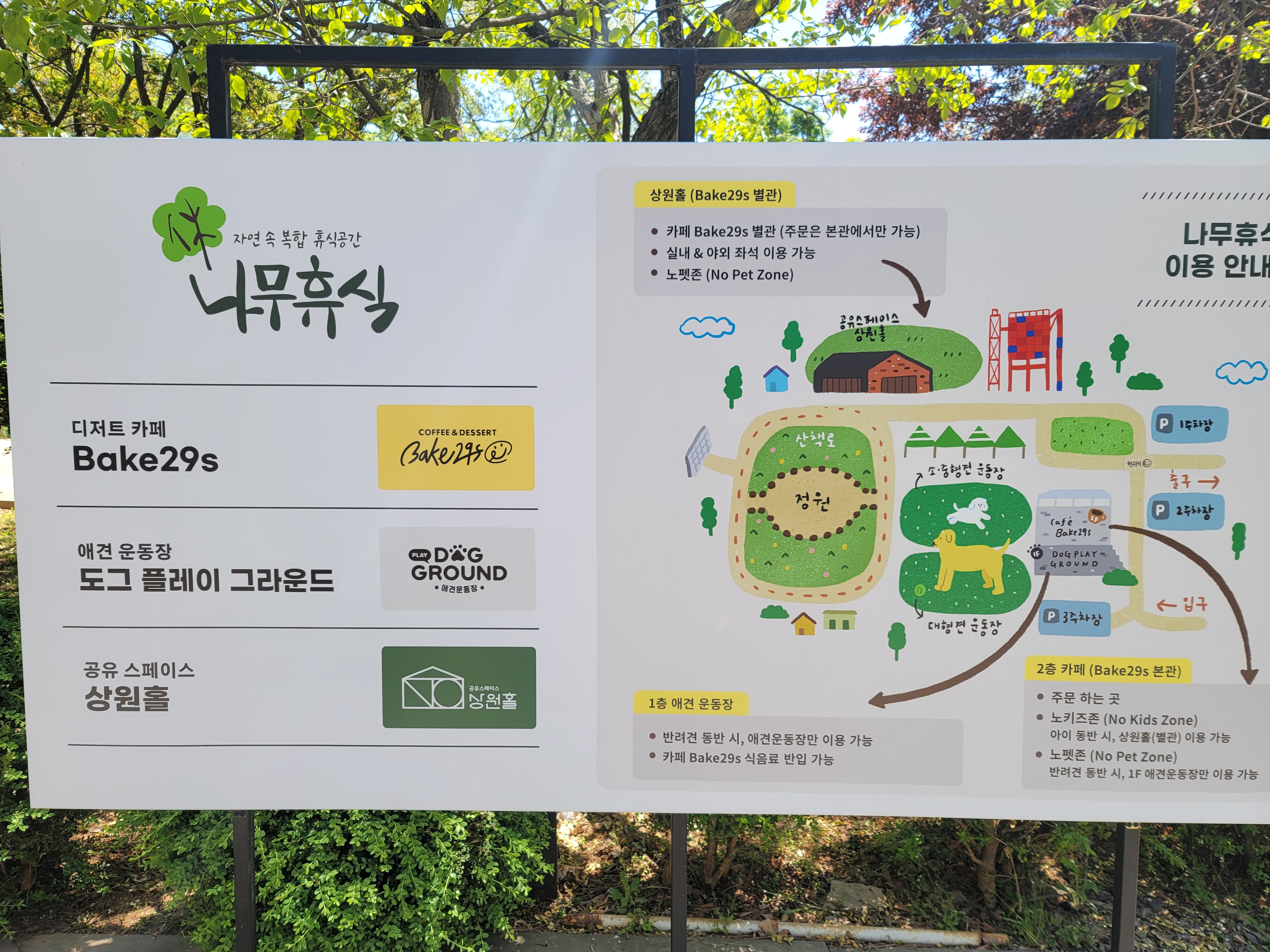 본래 나무휴식카페가 베이커리카페+애견동반동산+숲+책읽는카페 이렇게 구성되어있는데