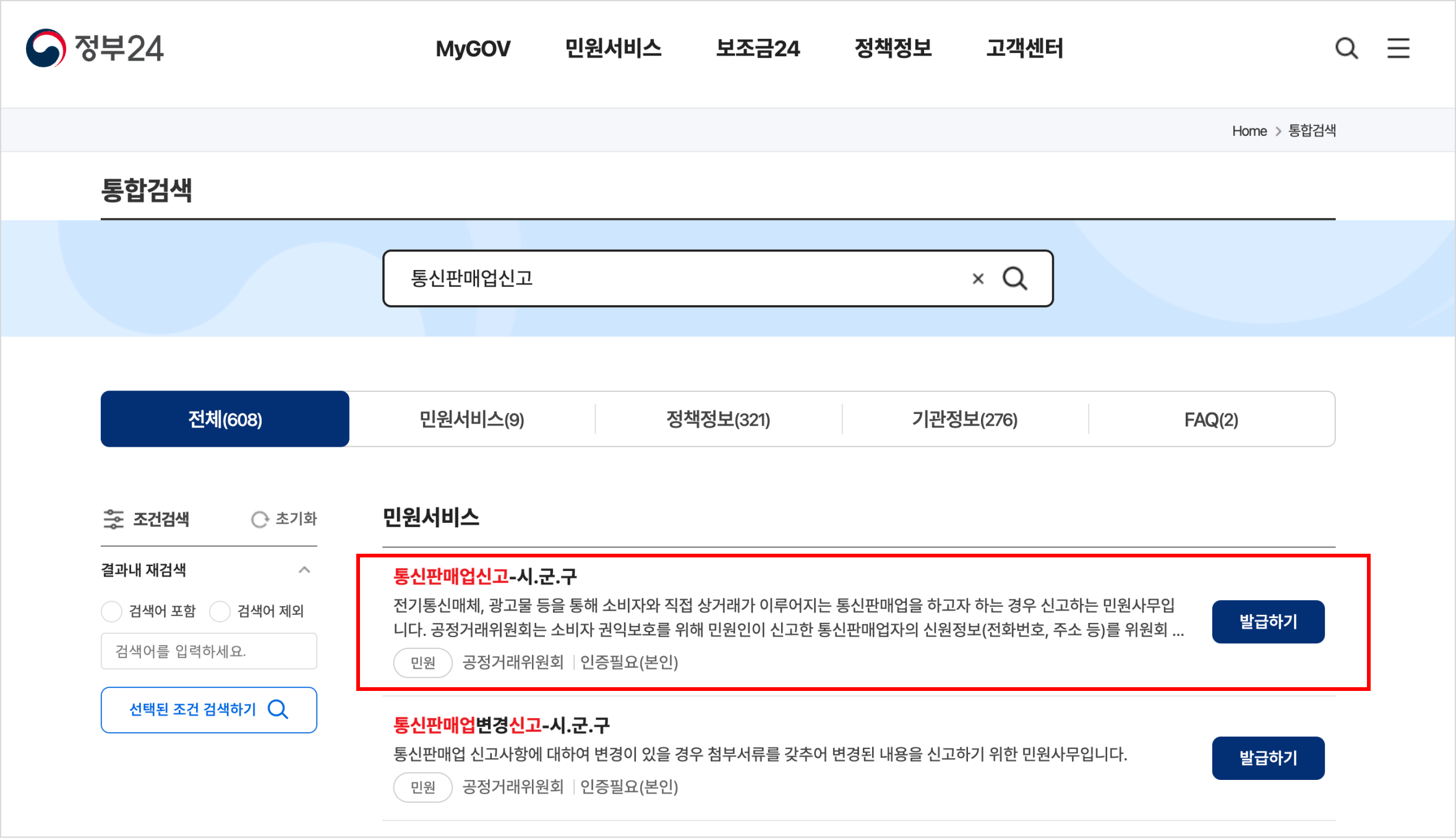 통신판매업신고 | 민원안내 및 신청 | 정부24
