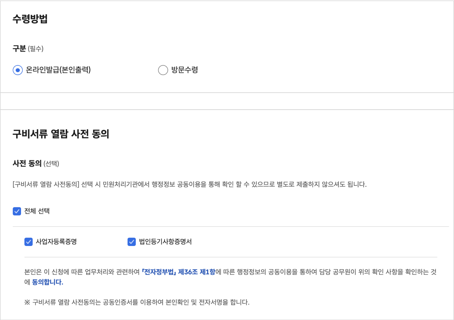 취급품목은 자신의 사업항목대로 체크하시면 됩니다.