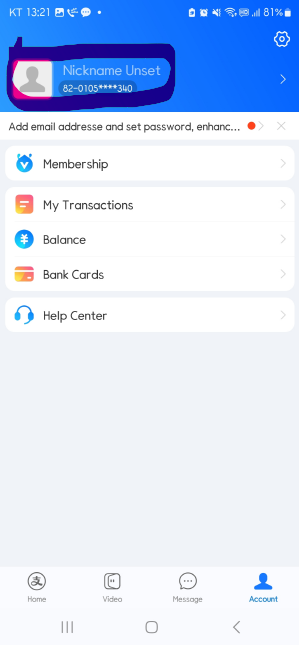 - 앱 메인 화면에서 "Account" 또는 "My" (번역: 나 또는 내 정보) 탭을 클릭합니다.