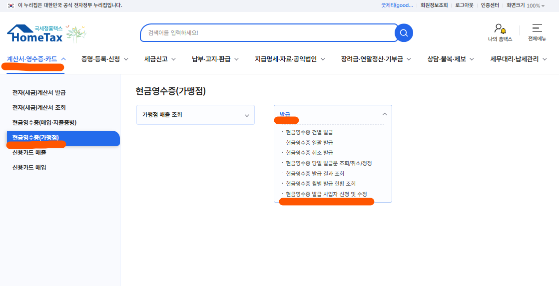 [준비단계] 9. 현금영수증 가맹점 가입하기