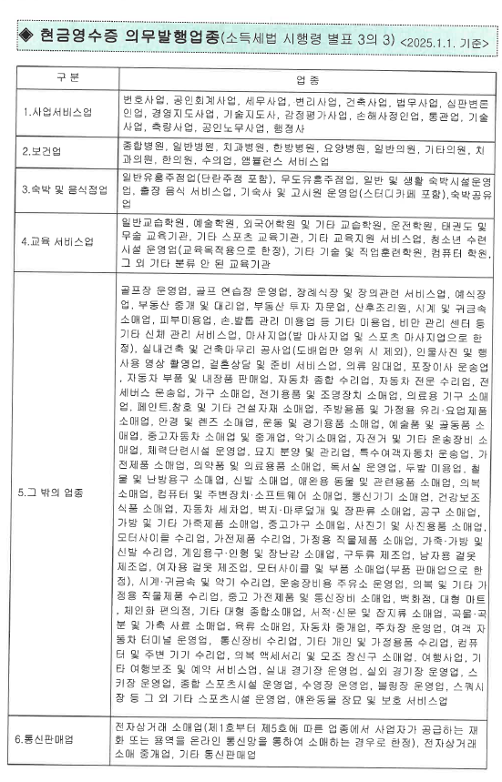 - 현금영수증 발급 의무를 위반할 경우 과태료가 부과될 수 있습니다.