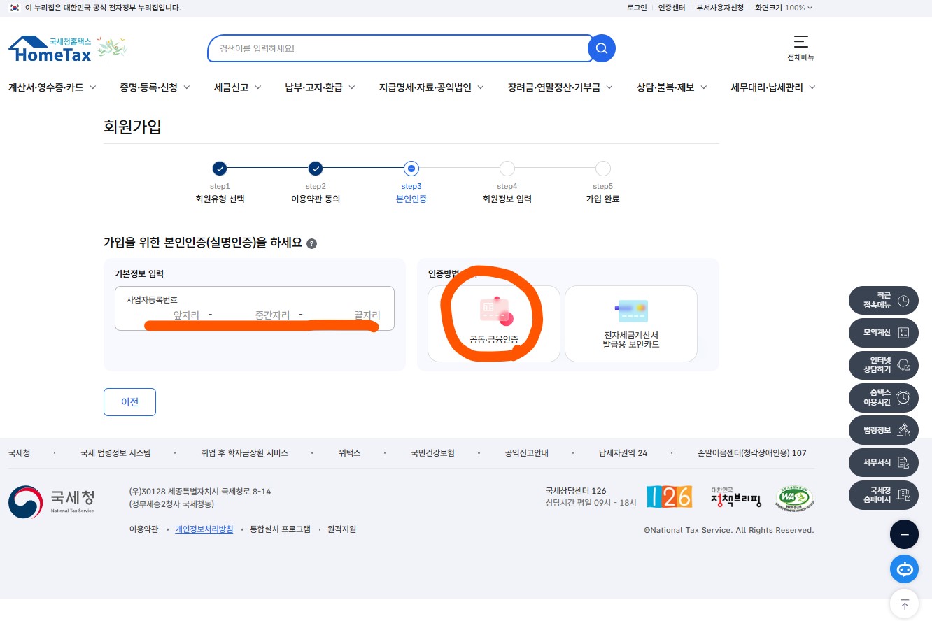 3. 홈택스 사업자 회원 가입 후