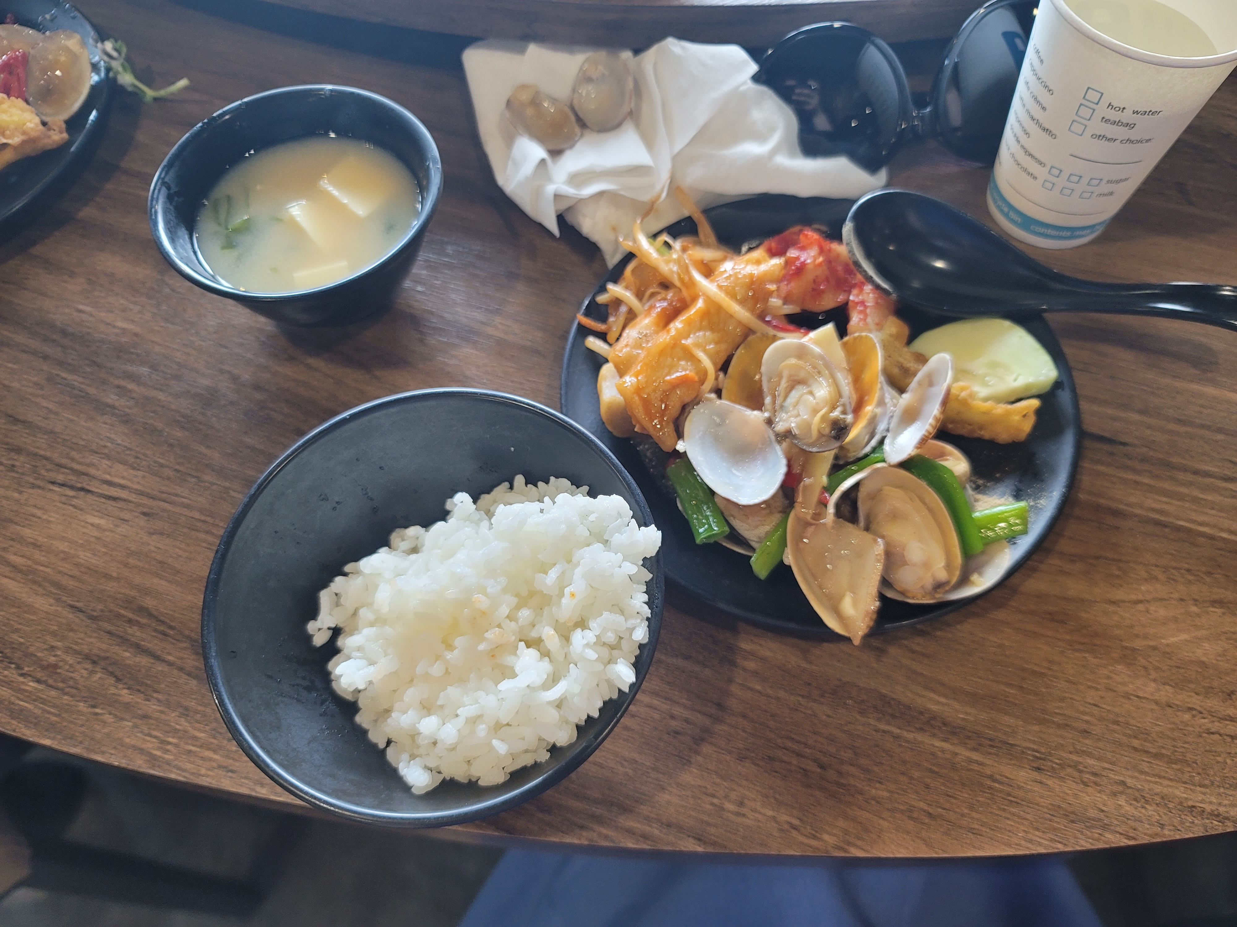 음냐음냐...굳이 달랐던 건 바지락볶음이 나왔다는정도가 달랐으려나..