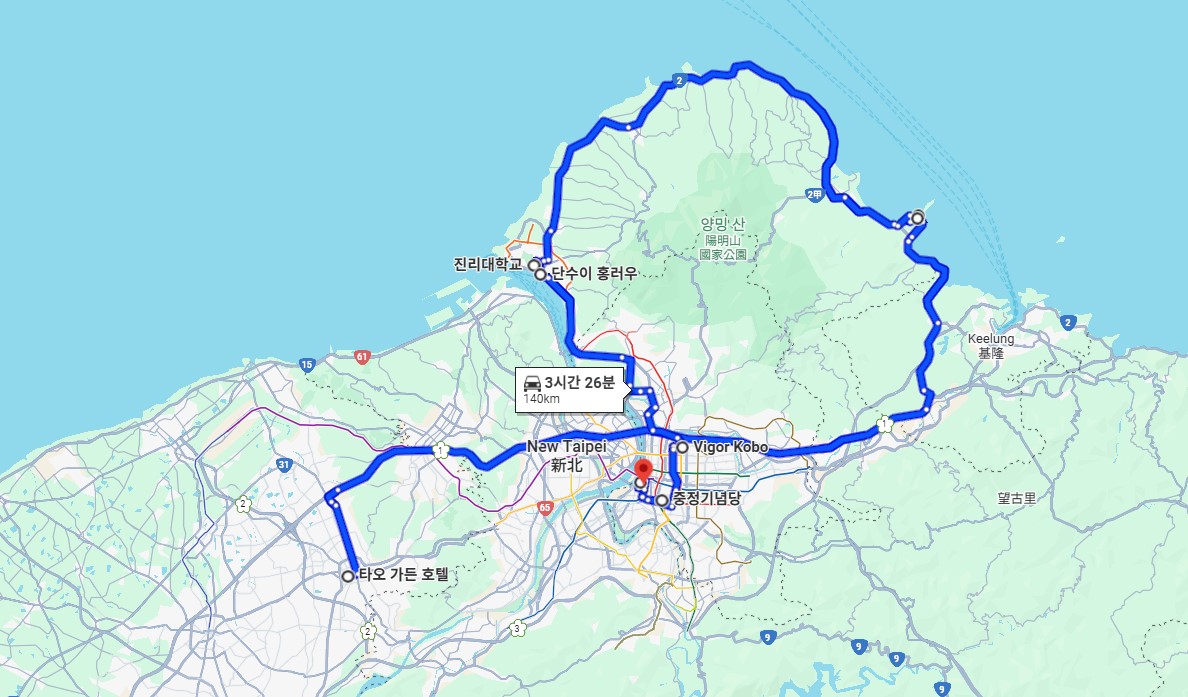 타오위안시에서 북쪽 끝 해안가까지 달려가는 시간은 한시간반정도 소요되었던것 같아요.
